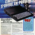 The French ZX81 box included some extras that were not found in the British box. It came with a Filesixty add-on keyboard and 2 software cassettes, all in a tidy cardbox box with a plastic carrying handle. For some reason the TV output is reversed: white characters on a white background.