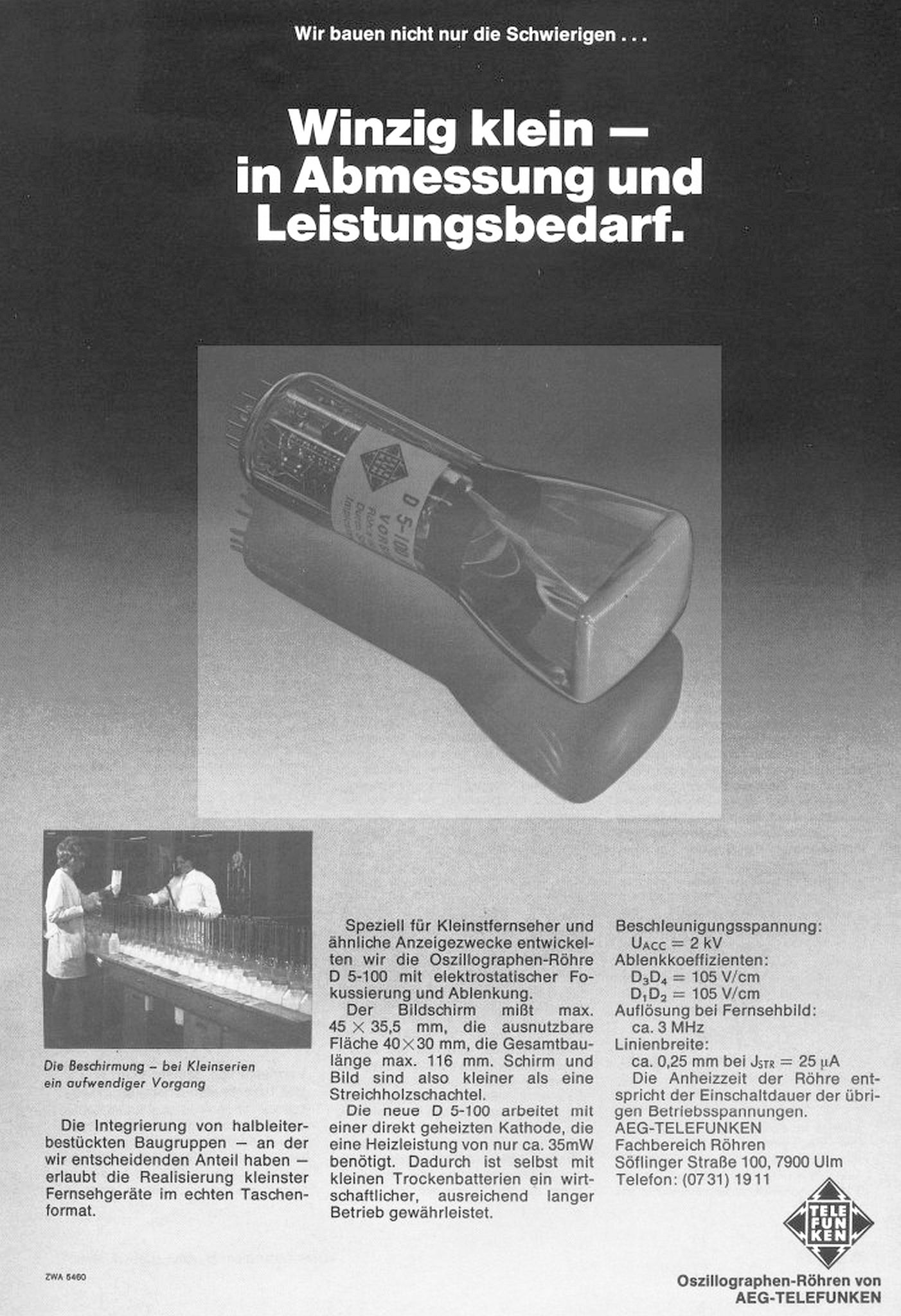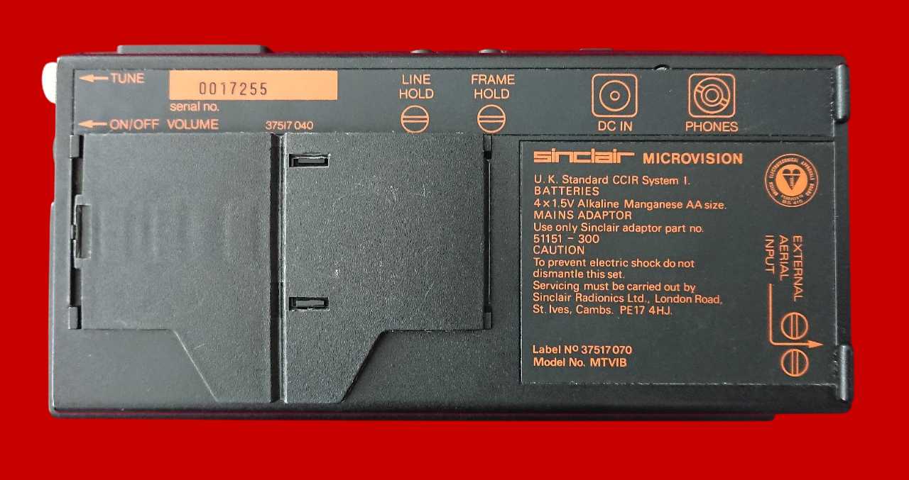 The MTV1’s CRT was a 2″ AEG/Telefunken D5-100WB tube, originally designed as a oscilloscope tube with green (P1) phosphor (D5-100GH). However, Sinclair had it made with white (P4) phosphor specifically for the MTV1.